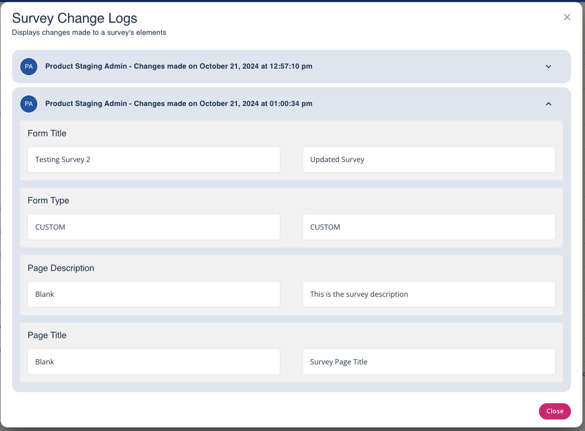 Added a new survey trigger, “After Each Logged Session”. When a survey is set up with this trigger, the survey will be triggered to the assigned user after each session is logged.