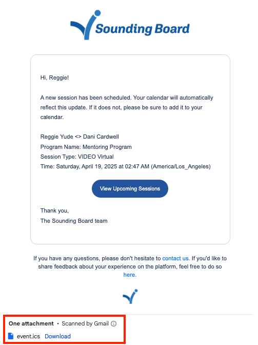 - Added the ability to download the session calendar event from the scheduled session email for users whose calendar status is not properly synced