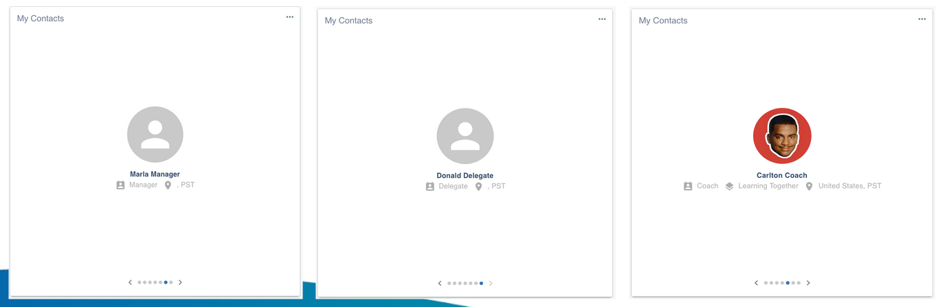 The My Contacts card on the dashboard has been updated to only show users that the logged in user:
